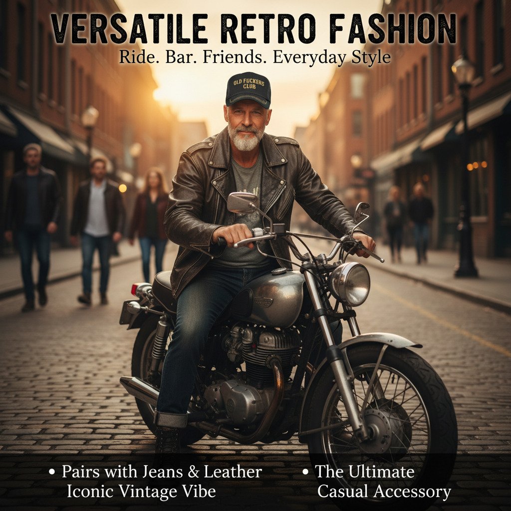 The high quality vintage cap that celebrates aging with bold humor and rugged style.